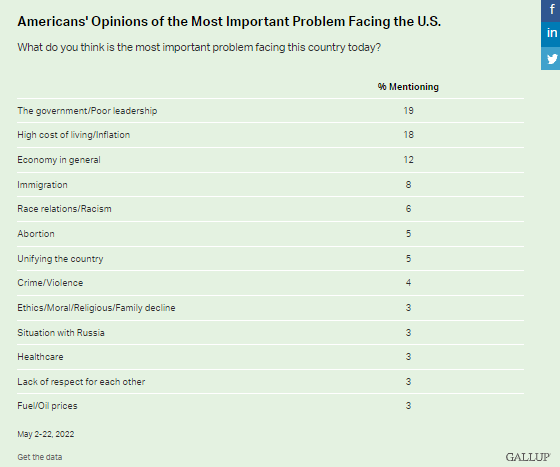 (77%), alongside the consequences of the Russian invasion of Ukraine (76%)