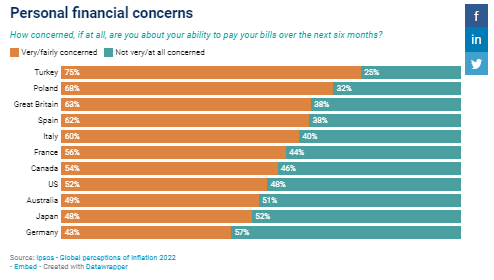 although in the US almost six in ten mention it (58%). (Ipsos Denmark) 30 May 2022 Source: https://www.ipsos.com/en-dk/global-perceptions-of-inflation-2022 745-43-21/Polls A 43 Country Survey Reveals The Purchasing Preferences Of Consumers