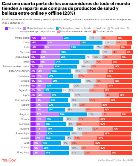 to shop primarily online (25% and 26%, respectively). (YouGov Spain) May 30, 2022 Source: https://es.yougov.com/news/2022/05/30/online-o-tienda-fisica-compra-de-productos-de-bell/ |