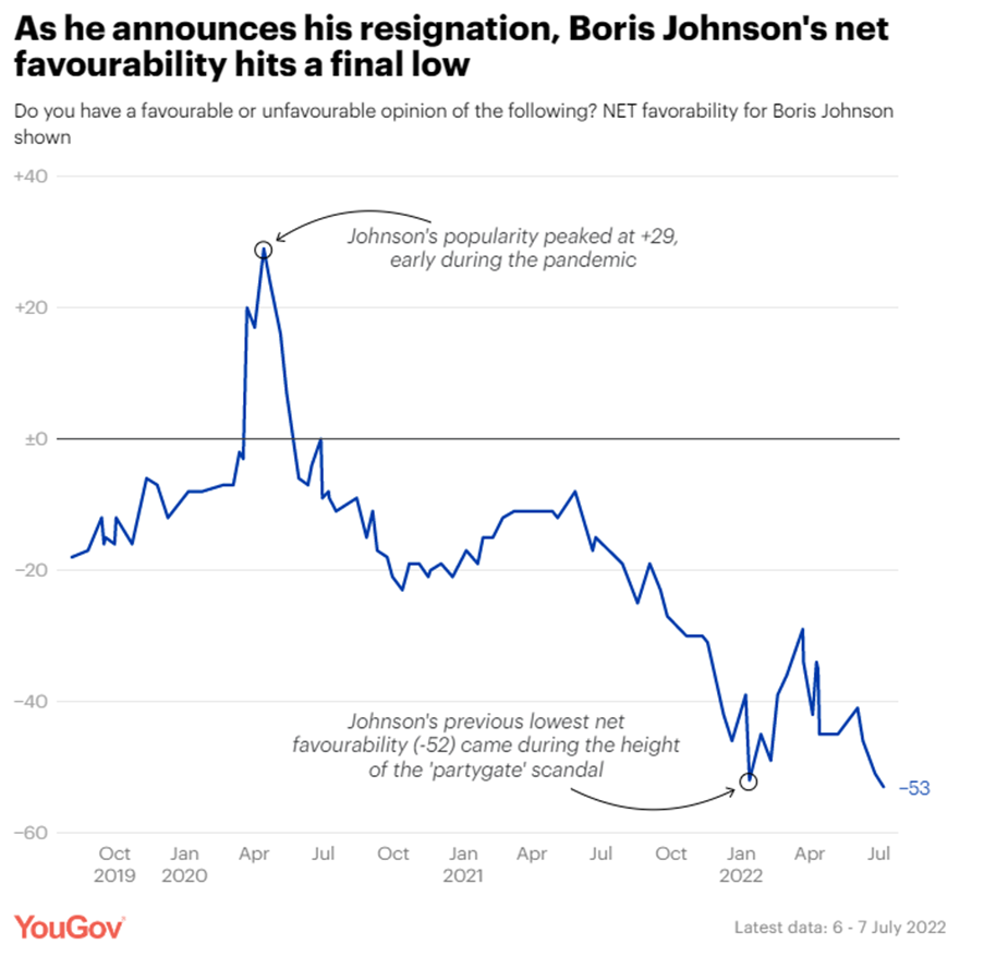 Resignation, Boris Johnsons Favourability Drops To Lowest Ever Score Of -53