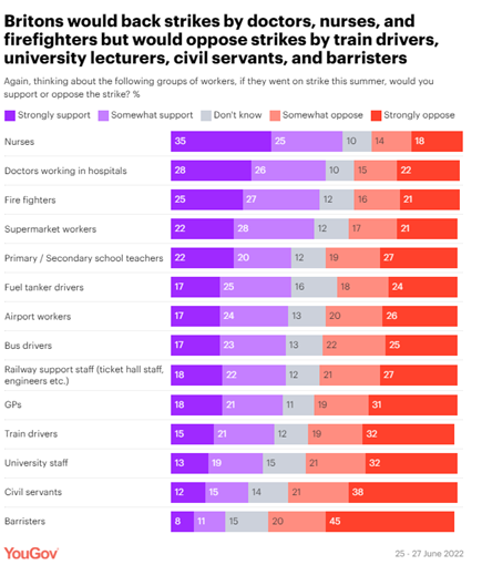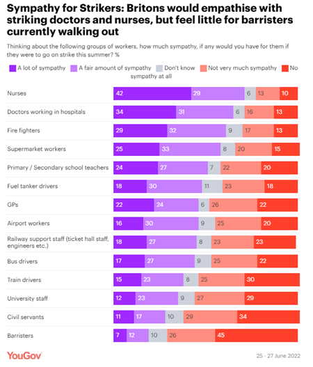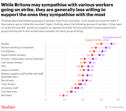 while only 1 in 10 (10%) say it’s colder than they were expecting. (Ipsos MORI) 19 July 2022 71% Of Britons Say They Would Sympathise With A Strike By