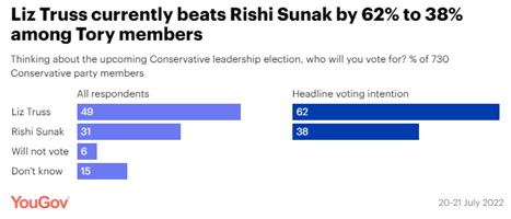 Truss Leads Rishi Sunak By 62% To 38% Among Tory Members Two