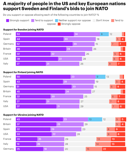 notable increase in support for NATO membership in Western Europe. Now a new survey shows that in some nations support has strengthened
