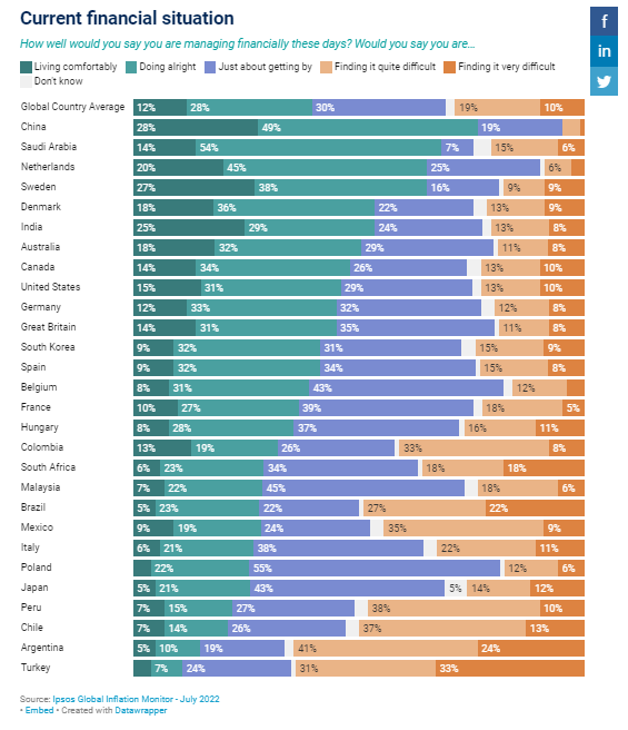 (66%) finding it difficult to get by. While people in Turkey are close behind
