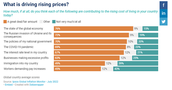 national government. Ben Page, CEO of Ipsos, said: “Inflation is the biggest worry worldwide