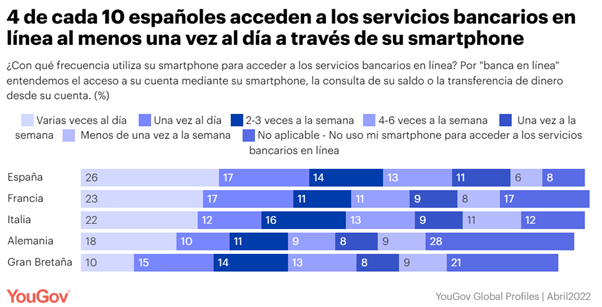 countries: France, Italy, Germany, United Kingdom and Spain. How often do consumers use their smartphone to access online banking