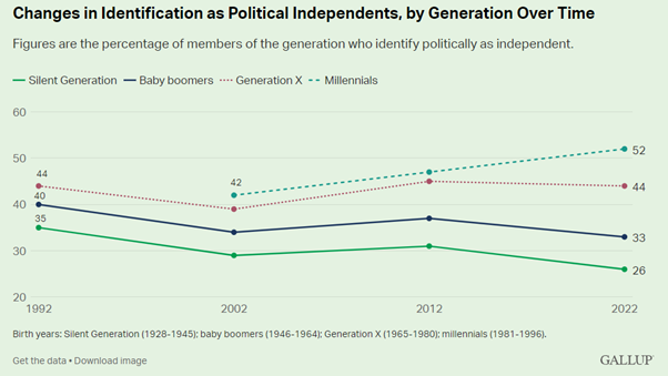 2011, 40% Or More Of U S Adults Have Identified As Political Independents In