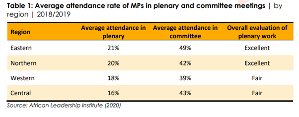 Ugandan MPs received above-average performance evaluations in the 2019/2021