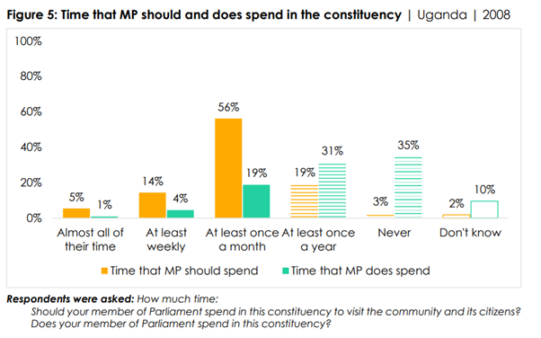 “most” or “all” Ugandan MPs are corrupt nearly doubled (from 25% in 2005 to