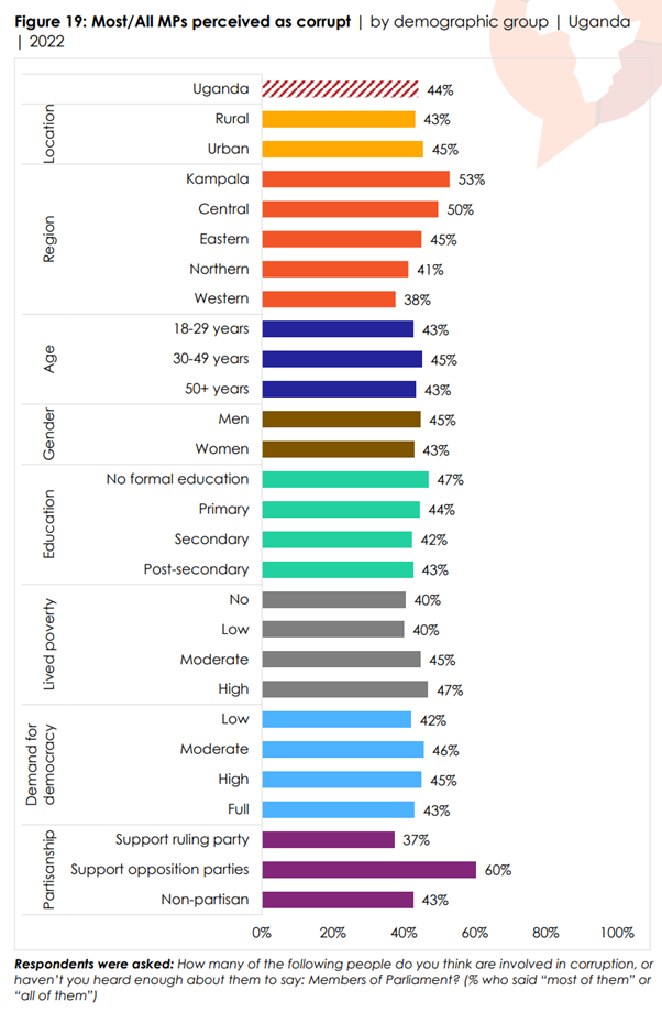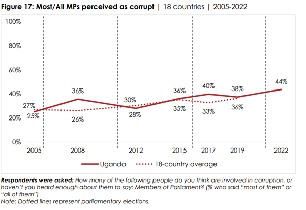 the growing share of Ugandans who view MPs as corrupt severely undermines the