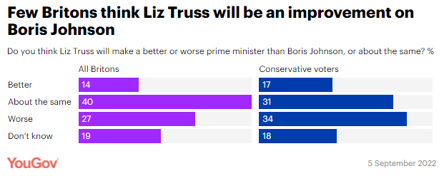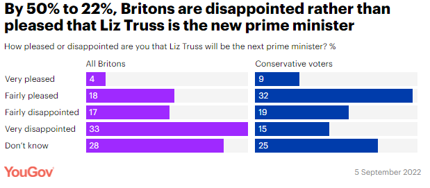 50% to 22% Britons are disappointed that Liz Truss will be the next PM 7