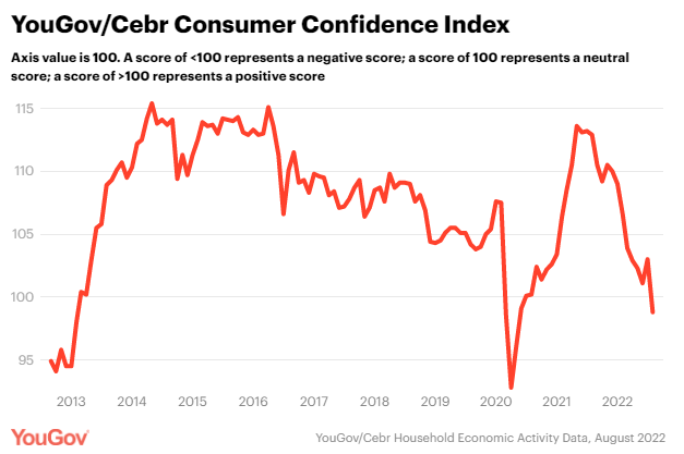 Consumer Confidence Is Negative For The First Time Since May 2020 Over