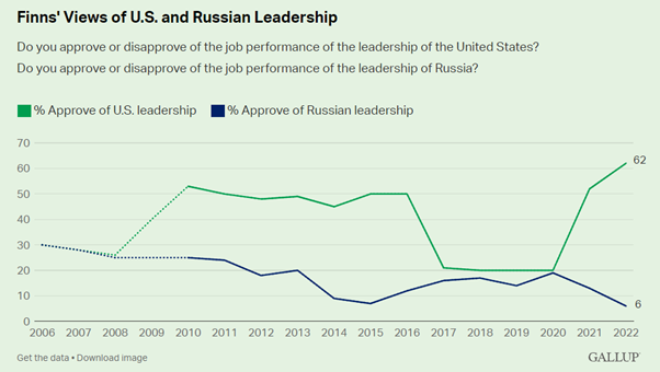 Leadership Reaches New High as They Sour on Russia More than six in 10 Finns express approval of U.S.