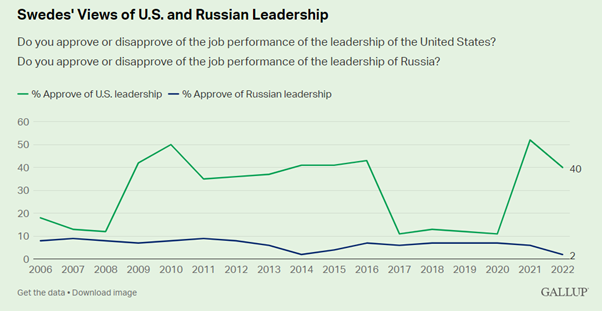 2022, while 96% disapprove. Russian leadership has not been popular in Sweden