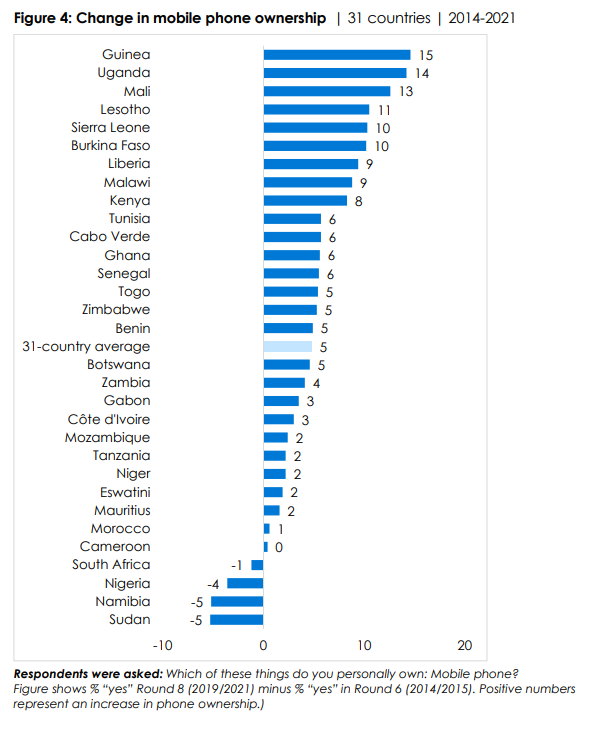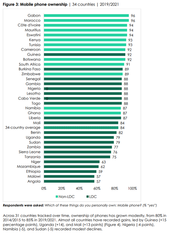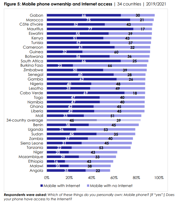 phones (Figure 5), reaching a high of 77% in Mauritius, followed