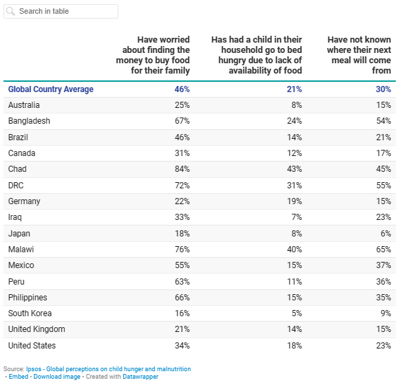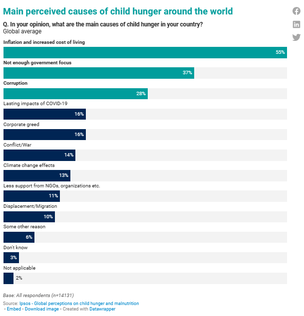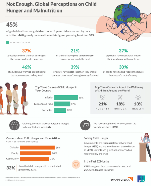 Moreover, only 37% believe that child hunger will be eliminated by 2030 in