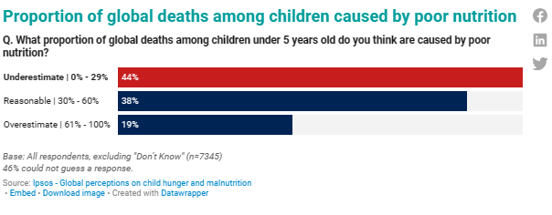 citizens underestimate the impact of hunger and malnutrition A staggering 45%[1] of global deaths among children